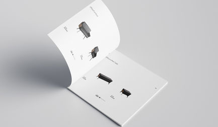 Designed for for furniture and seating products for the Aboghaddareh Holding. The design is minimalist and simplistic, reflective of the holding's formal and straightforward character. The primary focus is to showcase the products, emphasizing the brand's confidence in their quality. There is no descriptive text; only product codes and names are placed below the pictures, allowing the customers to concentrate on evaluating and selecting the products without distraction